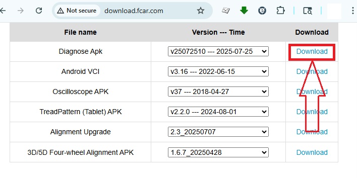 If you are just recent purchase the update and still showing “license expired” under vehicle database, you need to open browser and type in http://download.fcar.com to download Diagnose APK manually and install on the tablet.